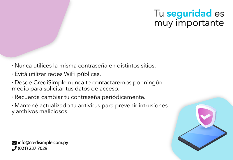 El único medio de acceso a nuestra plataforma web es https://banca.credisimple.com.py, si notas alguna diferencia, evita ingresar tus datos para evitar accesos no deseados.